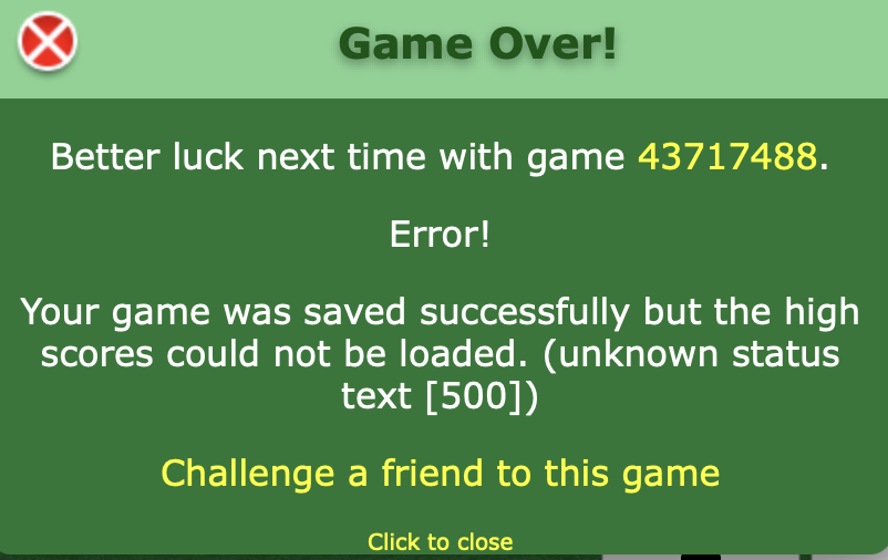 @jim @david Got this error three times this evening amid many successful saves. In each case when I clicked on High Scores it showed the score, so it did in fact get saved.