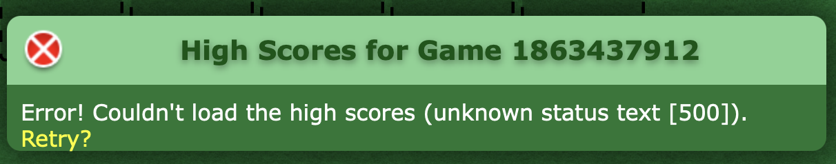 Getting 500 errors at the end of each game. Database server seems to be acting up again.